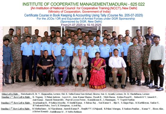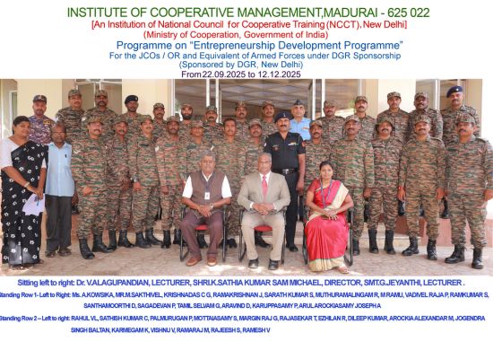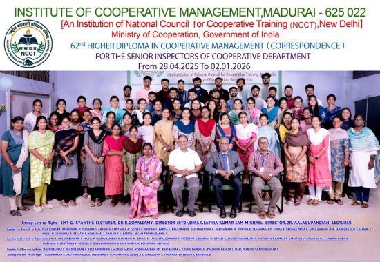 Organized for the Officers of Audit for Milk Cooperatives / Dairy / Handlooms / Textiles / KHADI Federation / Sericulture / Sugar / ICDS Department / Administrators of Animal Husbandry Societies (Veterinary Assistant Surgeon) Animal Husbandry Department held from 25th June 2025 to 27th June 2025, at the Institute of Cooperative Management (ICM), Madurai.